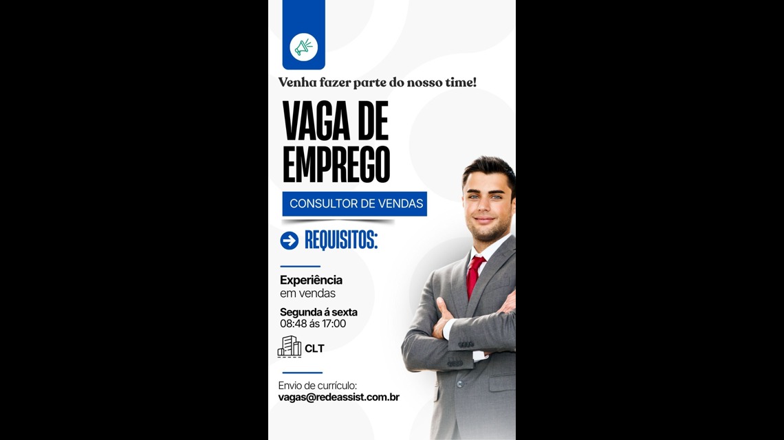 Estamos em busca de um Consultor de Vendas para se juntar à nossa equipe na REDE ASSIST 24H.Se você é uma pessoa dinâmica, comunicativa e tem um forte senso de responsabilidade, esta é a oportunidade perfeita para você.